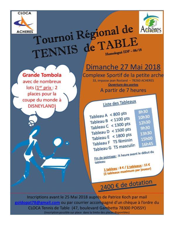 Le Tournoi Régional d'Achères aura lieu le 27 Mai 2018